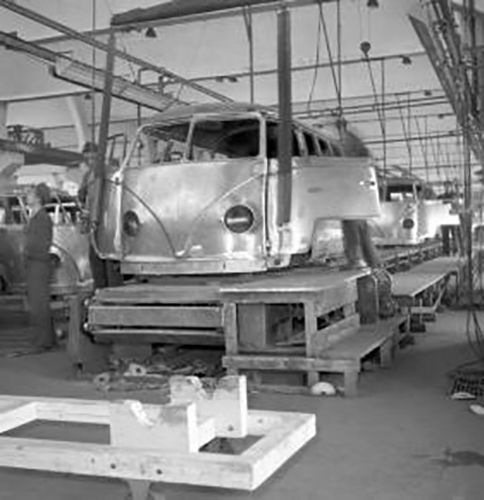 The concept for the Type 2 is credited to Dutch Volkswagen importer Ben Pon. Pon visited Wolfsburg in 1946, intending to purchase Type 1s for import to Holland, where he saw an improvised parts-mover "plattewagen" and realized something better was possible using the stock Type 1 pan. He first sketched the van in a doodle dated April 23, 1947, proposing a payload of 690 kg (1,500 lb) and placing the driver at the very front. Production would have to wait, however, as the factory was at capacity producing the Type 1.